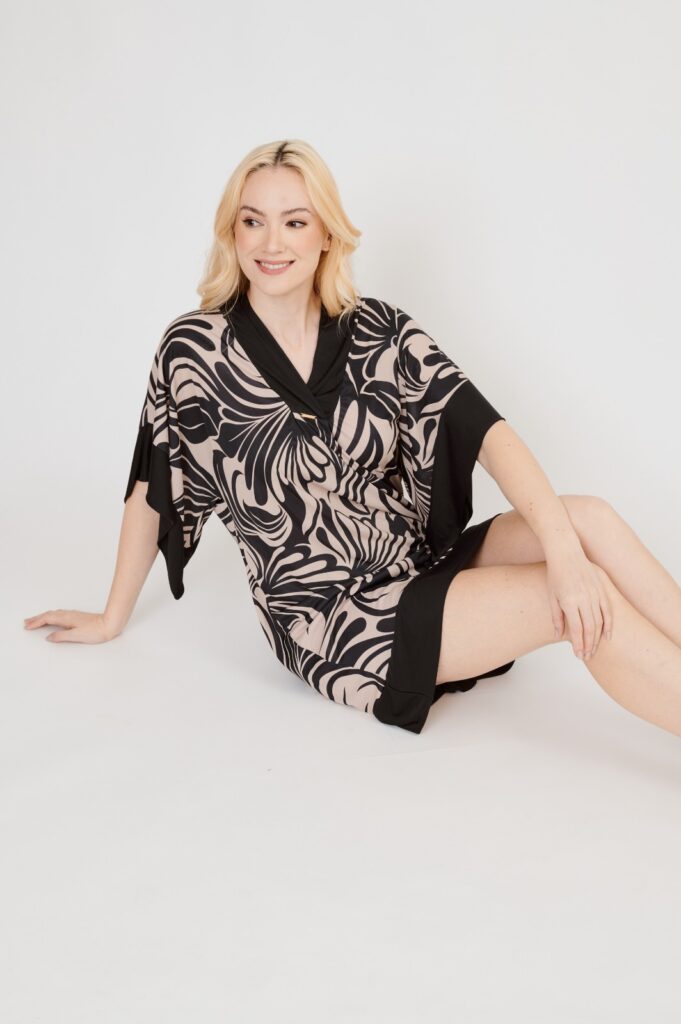 Com uma paleta de tons suaves e tecidos que fluem como brisa, a coleção evoca a leveza de um instante calmo — onde o tempo desacelera e tudo parece respirar.